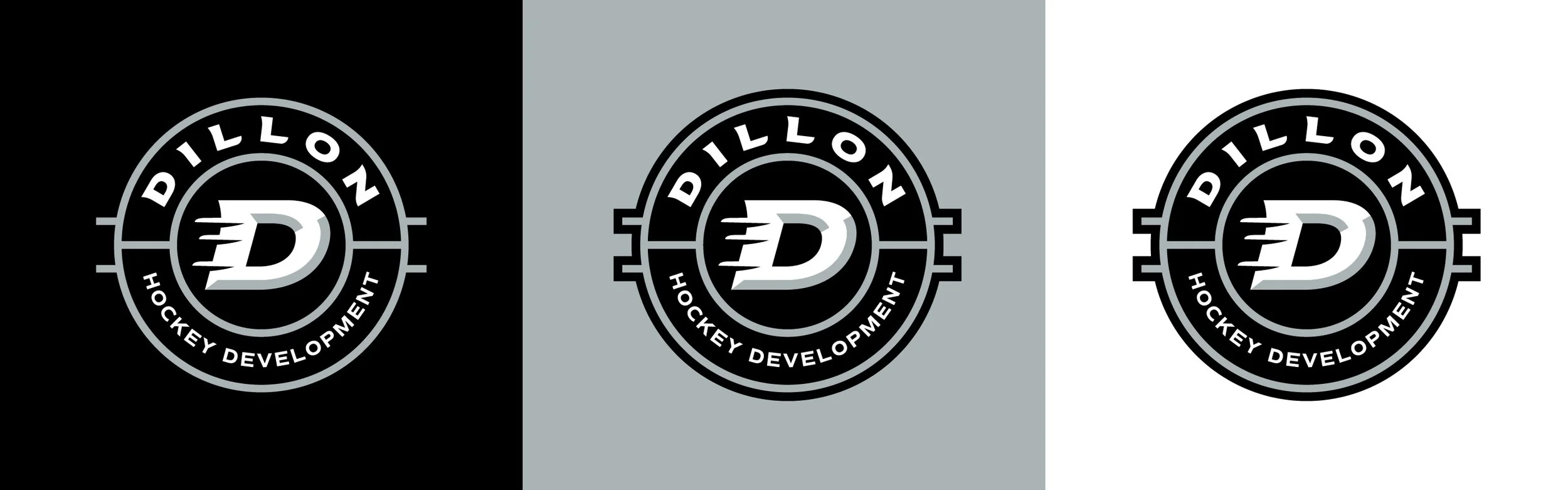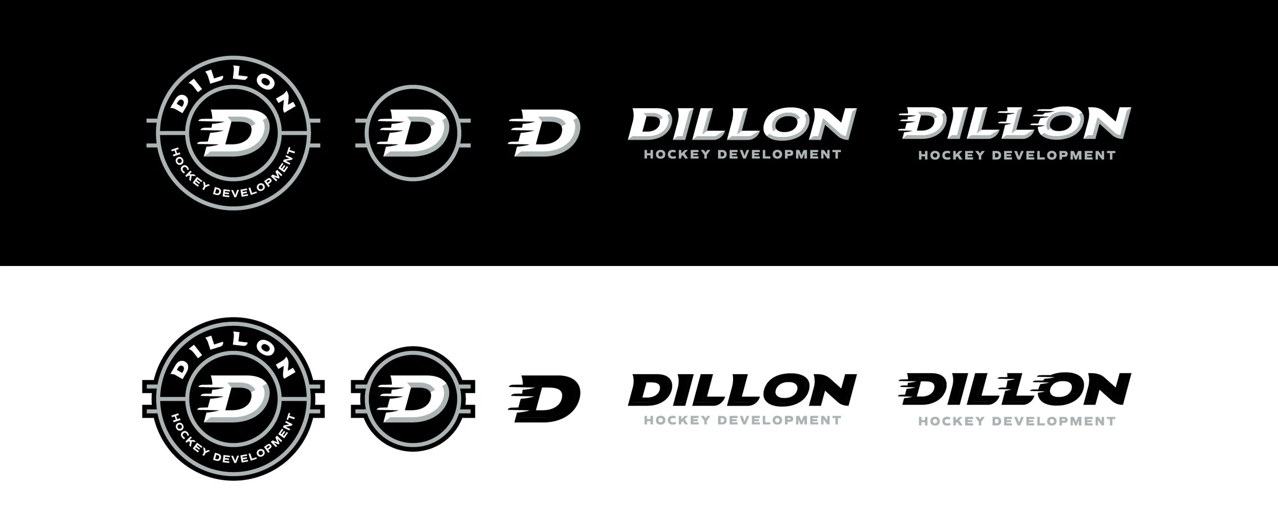 Dillon Hockey Development is a hockey skating school located in San Diego, California. For this mark, the client and I wanted to pay homage to both of Southern California’s NHL teams, the Los Angeles Kings and the Anaheim Ducks, by using the Kings color scheme and motion lines, and the stylized D as a nod to the Ducks. The primary mark is contained in the shape of a hockey faceoff circle and a customized italic typeface (both with and without motion lines) for use in wordmarks rounds out the brand family.