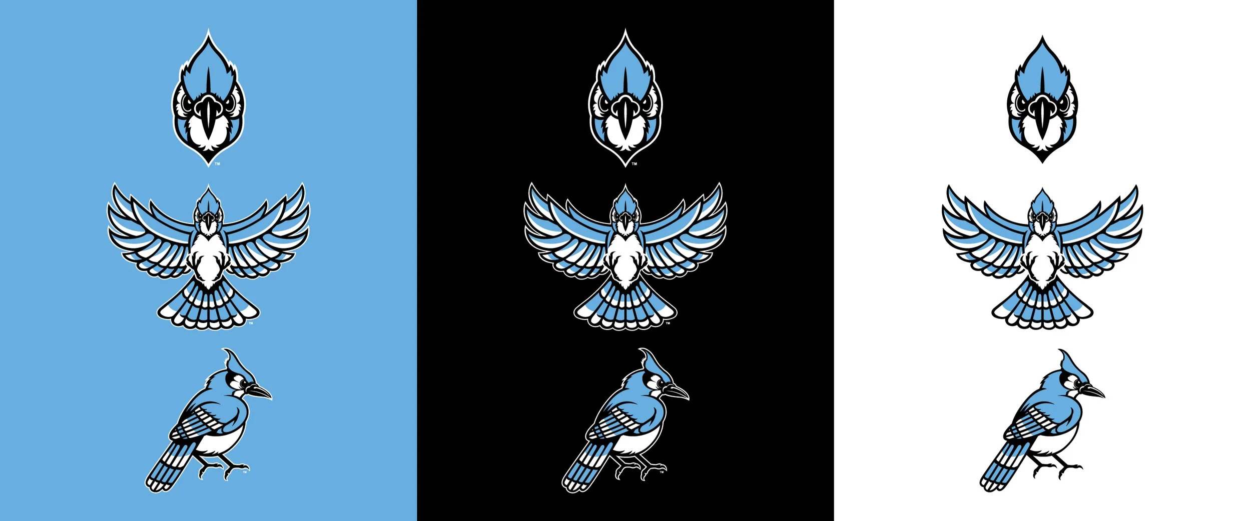 Since 2014, Johns Hopkins has used its current primary side-facing Blue Jay head as the official mark for athletics. The newly created designs stay consistent with that visual identity, introducing a front-facing Blue Jay head and full-body versions that complement both the traditional side profile and the new forward-facing look.