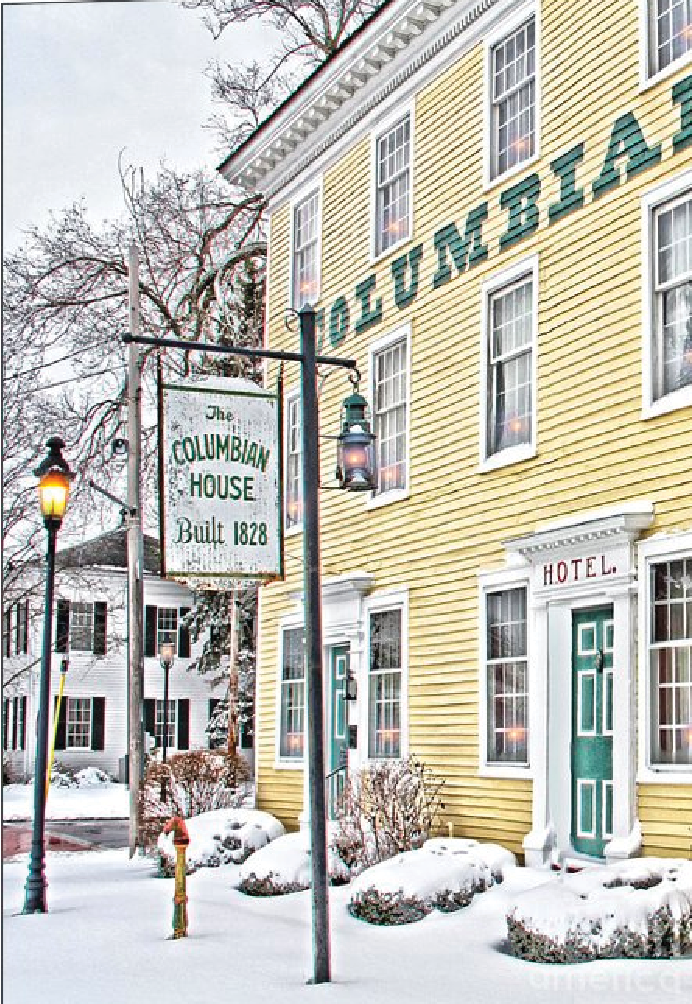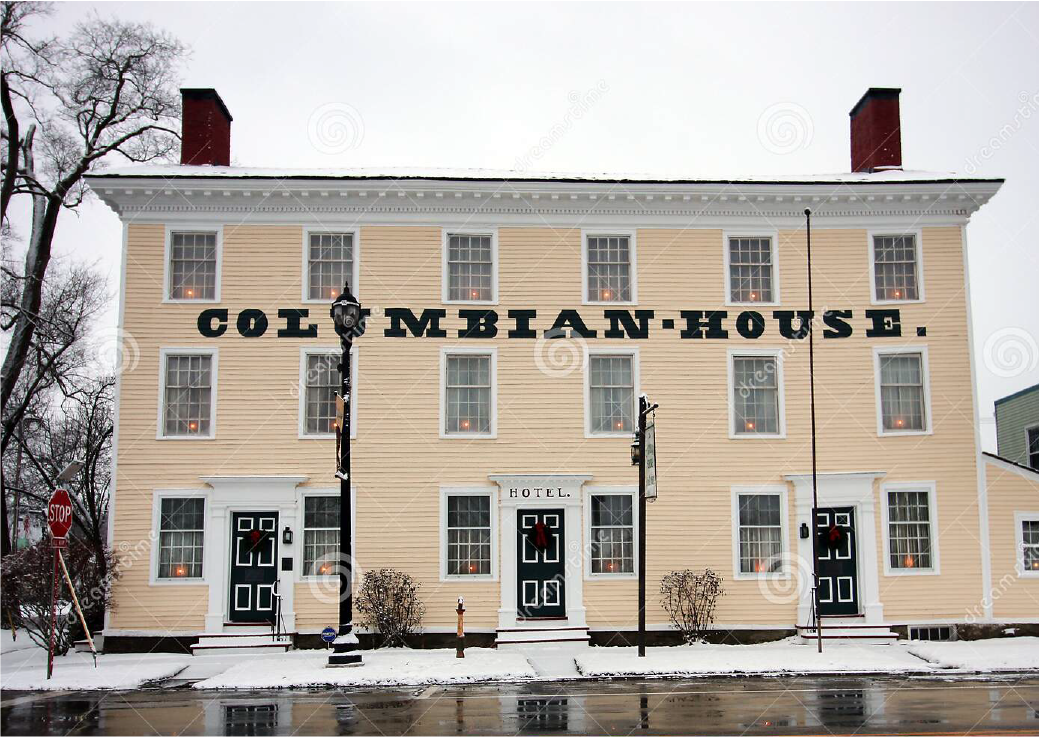 The Columbian House was built in 1828 in Waterville by John Pray, the founder of the town. It began as a stagecoach inn, included a ballroom, housed a jail and was the town’s first post office. Because of the building’s importance, I took inspiration for a typeface I created to complement a bold sans-serif and a script.
