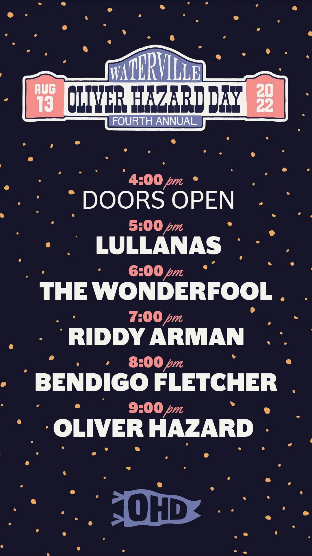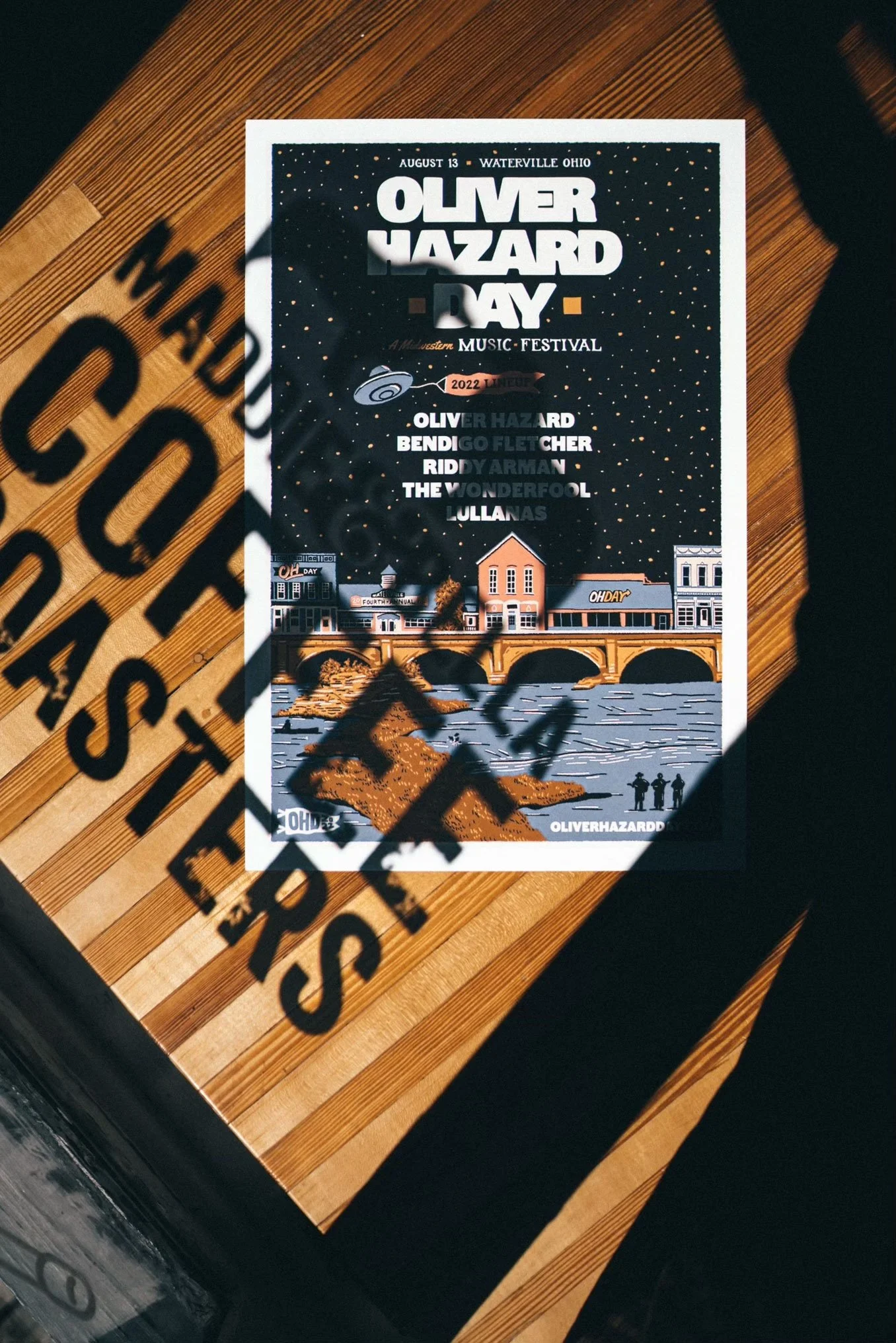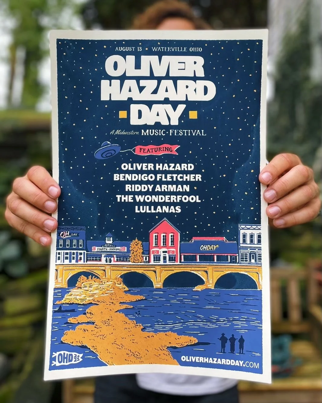 Oliver Hazard holds a music festival every summer in a small town in northwest Ohio called Waterville. They shut down main street, bring in bands from around the nation and put on a great show while supporting great local causes. In 2022, the band reached out to me to set the branding for the event and create the official poster, some merch and other brand touchpoints.
